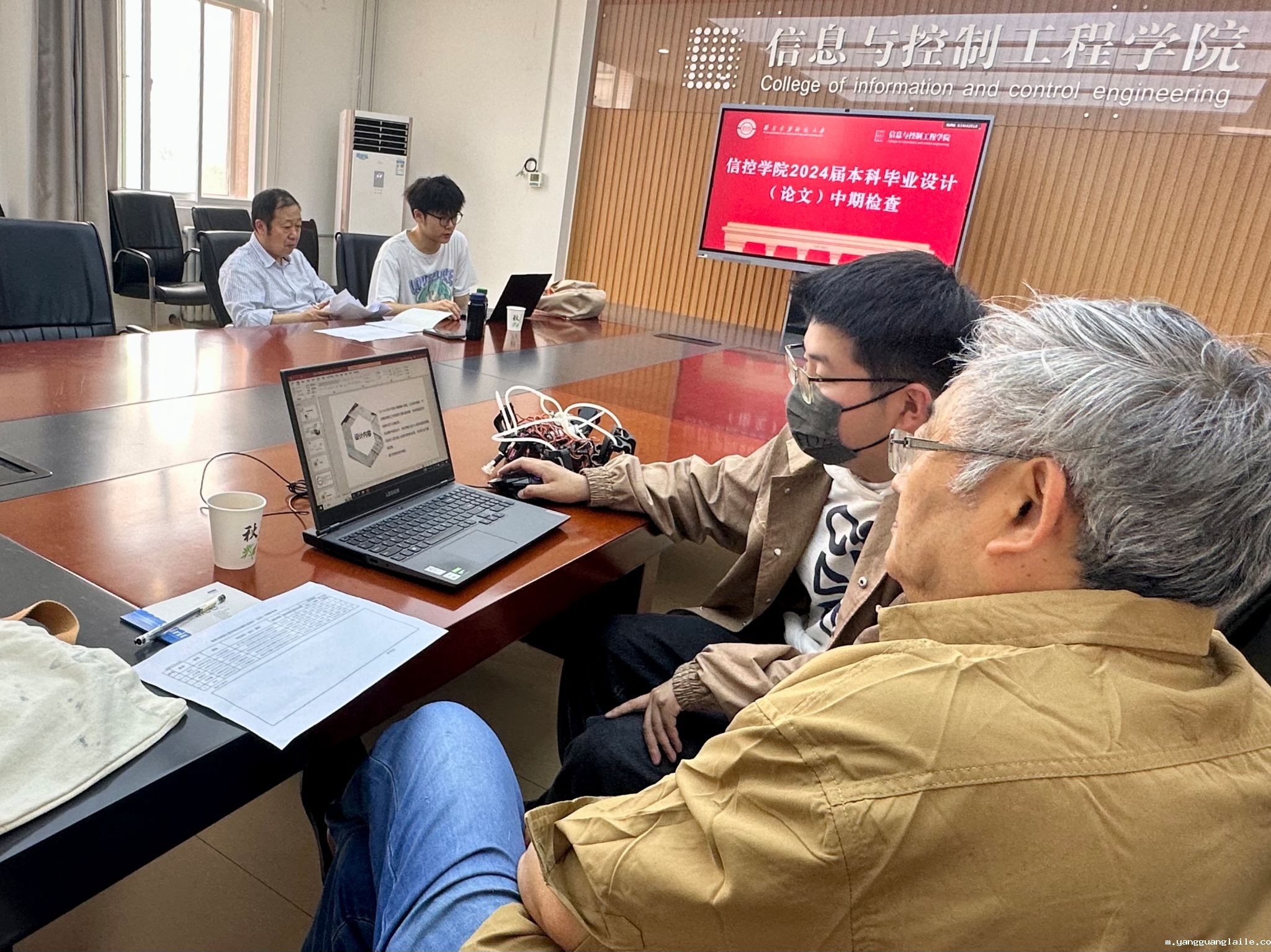 为强化2024届本科毕业设计(论文)工作的过程管理,及时发现并解决毕业设计(论文)完成过程中存在的问题,保证毕业设计质量,信控学院高度重视,对标学校中期检查的要求,于4月15日至4月26日开展毕业设计(论文)中期答辩及中期自查工作。学院各专业本着“以查促改”的原则,自动化、人工智能、计算机科学与技术、通信工程四个专业共分 22 组对学生毕业设计(论文)情况进行了中期检查和答辩,在检查过程中每名学生针对自己的设计内容、方案和进度进行了PPT汇报和问题回答,指导教师对学生的任务书、开题报告、初稿写作情况、进度计划完成情况、论文设计中存在的困难与问题等检查指导,为下阶段工作开展起到了督促与指导作用。